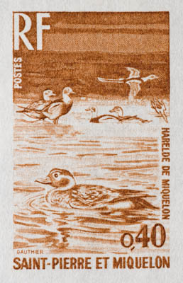 St. Pierre & Miquelon trial color proofs - 1973 birds 0.40F and 0.90F