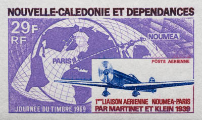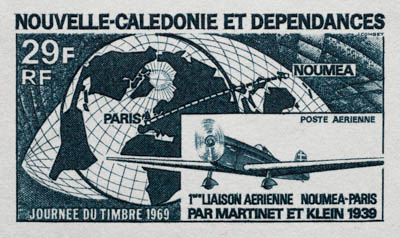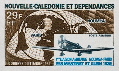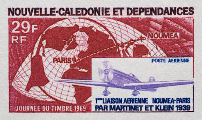 New Caledonia trial color proofs - 1969 Martinet and Klein Noumea-Paris Fight airmail < >